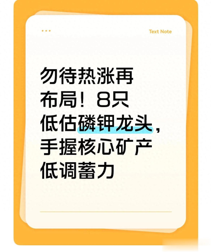 磷钾赛道作为“农业刚需+新能源增量”的双重赛道,具备极强的确定性与成长性,而手握核心矿产的低估龙头,更是将“成本优势、估值优势、成长优势”集于一身,既不用担心短期市场波动的冲击,又能享受长期赛道发展的红利。
